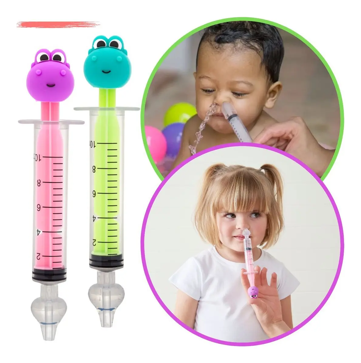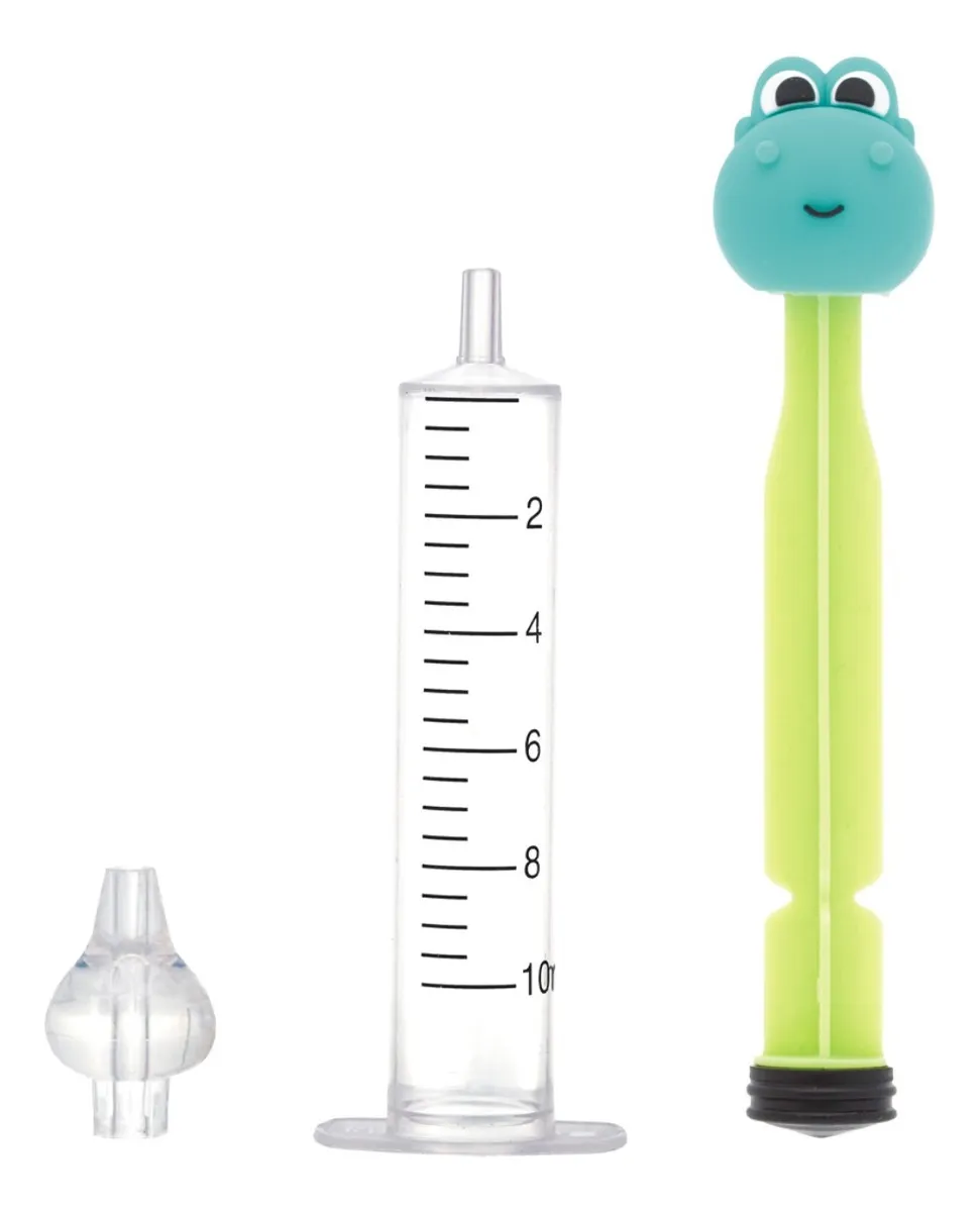 • Lavador Nasal Seringa Silicone Dino Catarro Sinusite Buba Cor Verde é feito de plástico resistente com capacidade de 10mL.