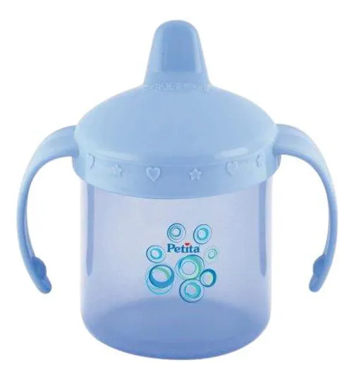 A Caneca com Alça da Petita é recomendada para treinar a criança na fase de transição da mamadeira ou peito da mãe para o copo, a partir dos 6 meses de idade.