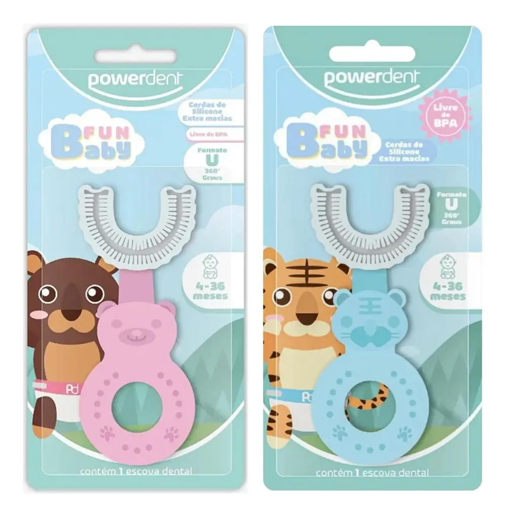 A escova de dente infantil Fun Baby 360 da Powerdent é ideal para a higienização dos primeiros dentinhos.