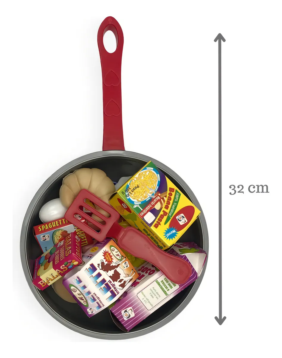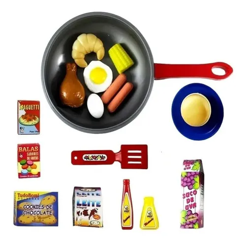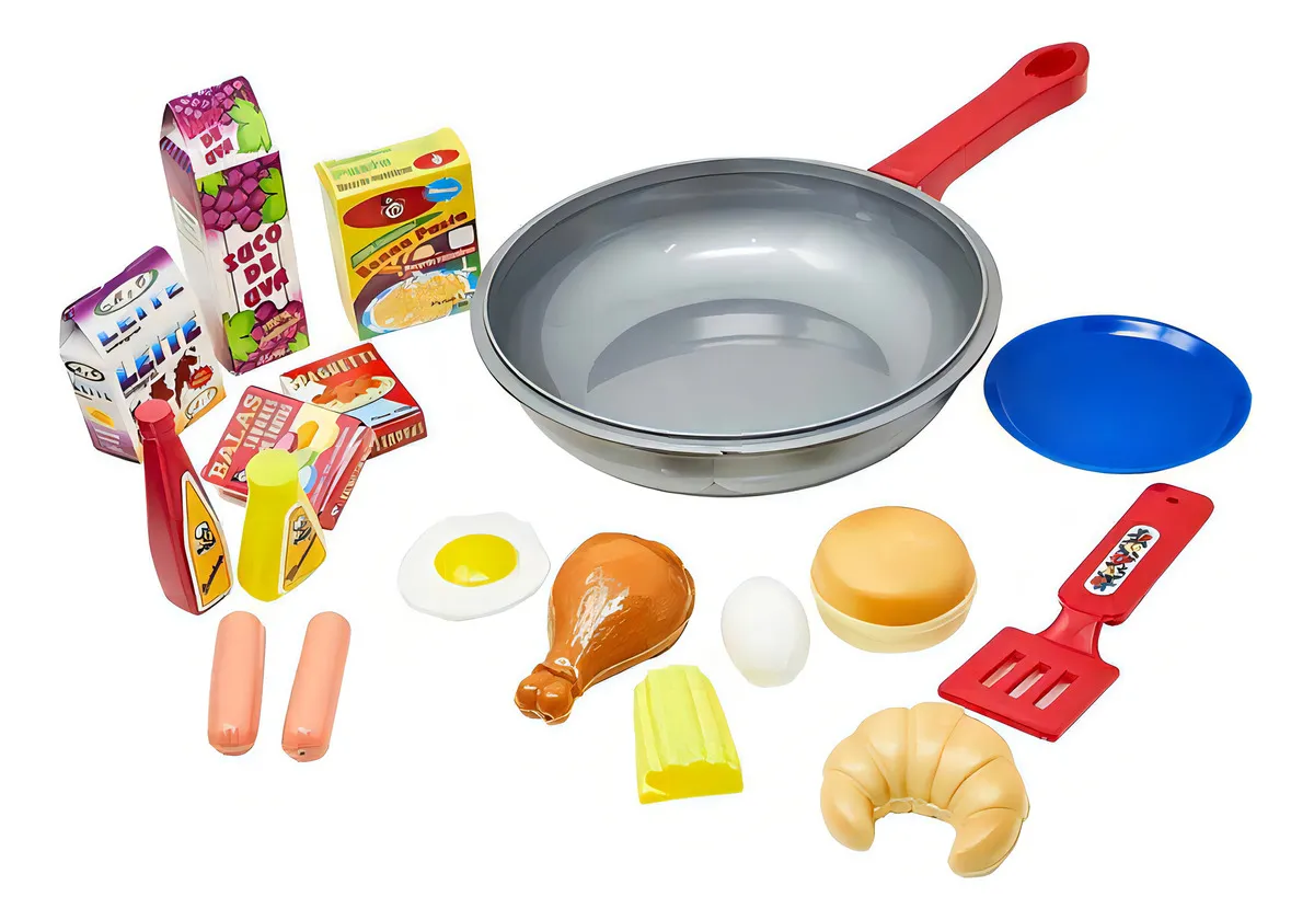 O kit inclui uma frigideira, permitindo que as crianças simulem o preparo de suas comidas favoritas. As crianças podem usar a imaginação para criar suas próprias receitas e pratos deliciosos.
