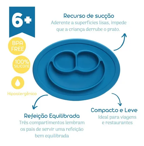 Apresentamos o Prato Infantil de Silicone da TURMINHA GUARÁ, na cor azul, perfeito para as refeições do seu bebê. Com um design redondo e liso, este prato possui três compartimentos para separar os alimentos, facilitando a alimentação do seu pequeno.