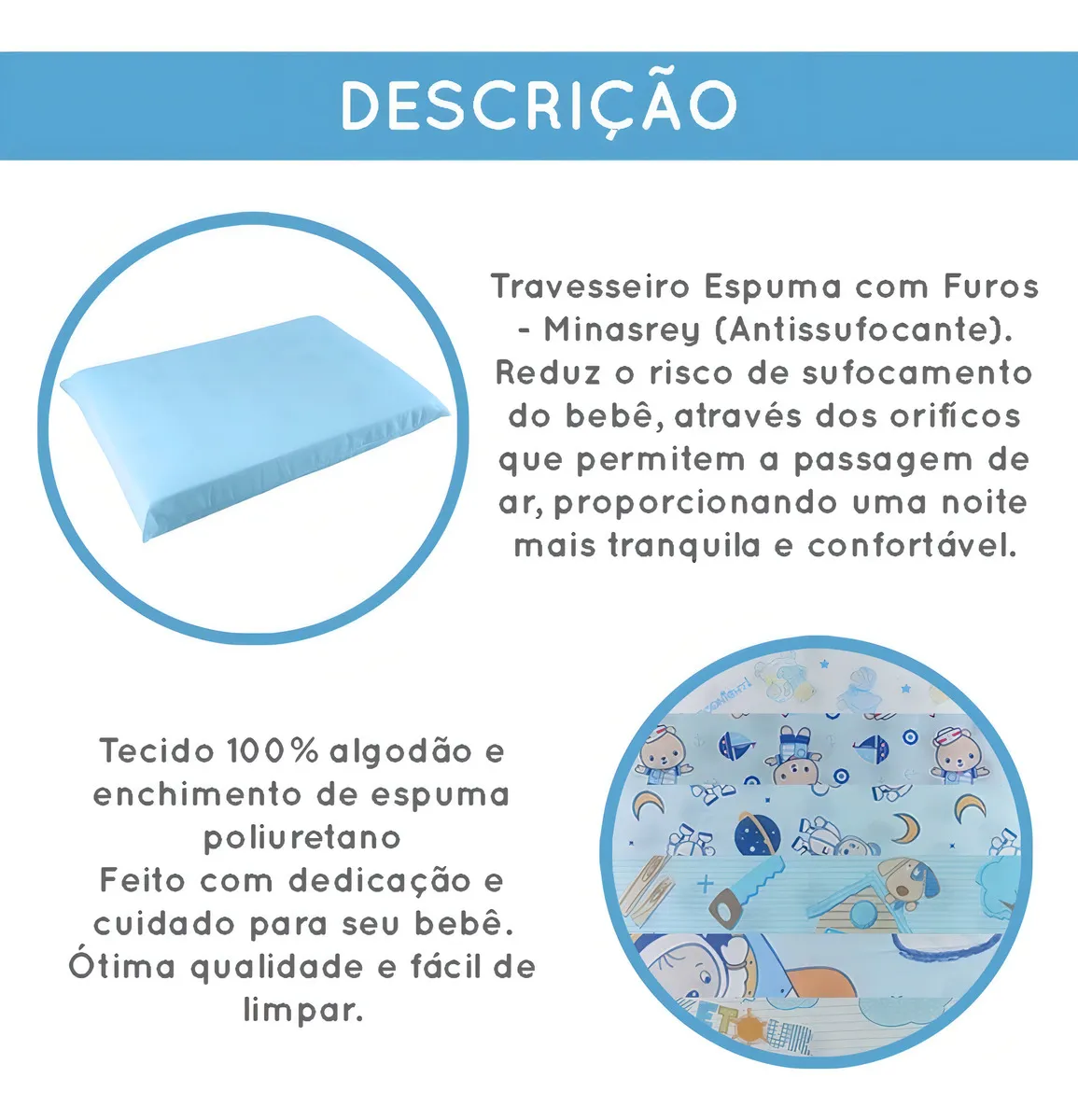 – Tecido 100% Algodão;